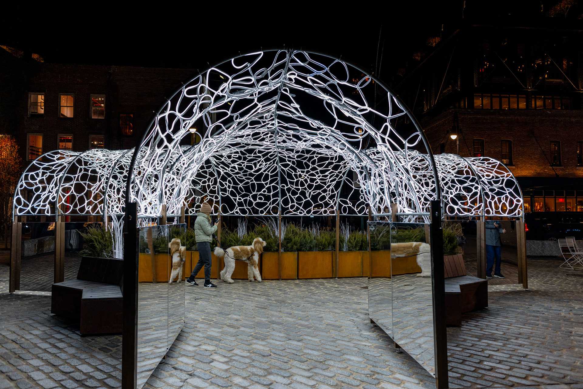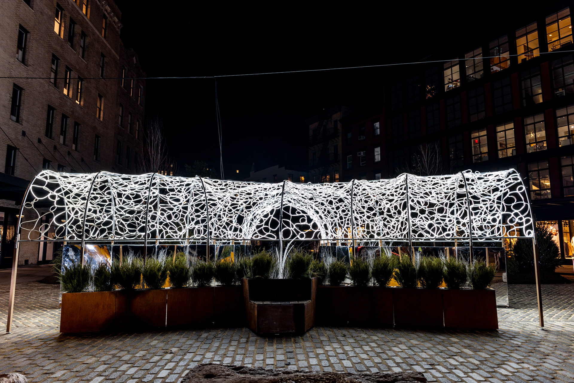 As a project manager for Theresa Rivera Designs, I oversaw prep and installation of the Meatpacking District's yearly Holiday display, Lights on the Cobbles. Not pictured is a miniature winter forest that we installed and lit, so visitors to Gansevoort Plaza could wander through an evergreen winter wonderland.